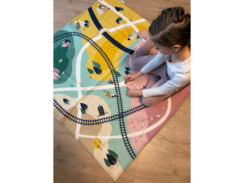 Autorskou hrací deku z dílny návrhářky Wilburriny budete milovat. Miminku ji můžete dát pod hrací hrazdičku, pást na ní koníčky nebo se jen válet, větší děti ji využijí na hraní s autíčky, panenkami či na stavbu svých snových měst, farem, atd. Deku lehce sbalíte a vezmete sebou na výlet, dovolenou, na návštěvu, do auta/letadla či jen tak, lze ji totiž použít i jako deku na přikrytí.